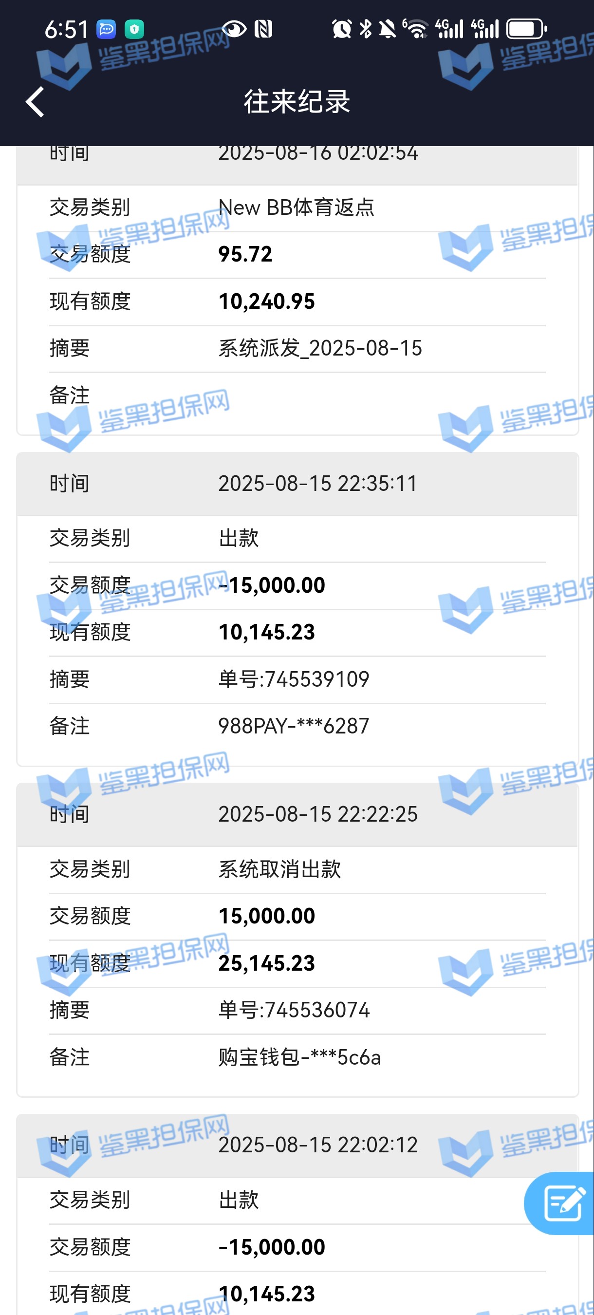 2、鉴黑担保网维权专员联系该平台相关负责人核实情况,对方表示NewBB体育平台抽查审核,需要一定时间,需要等待审核结果,若审核无异常会尽快出款,维权专员多次沟通协商要求催促审核进度,要求重视用户游戏体验以及平台信誉问题,对方说明后表示会再次催促平台,请耐心等待。